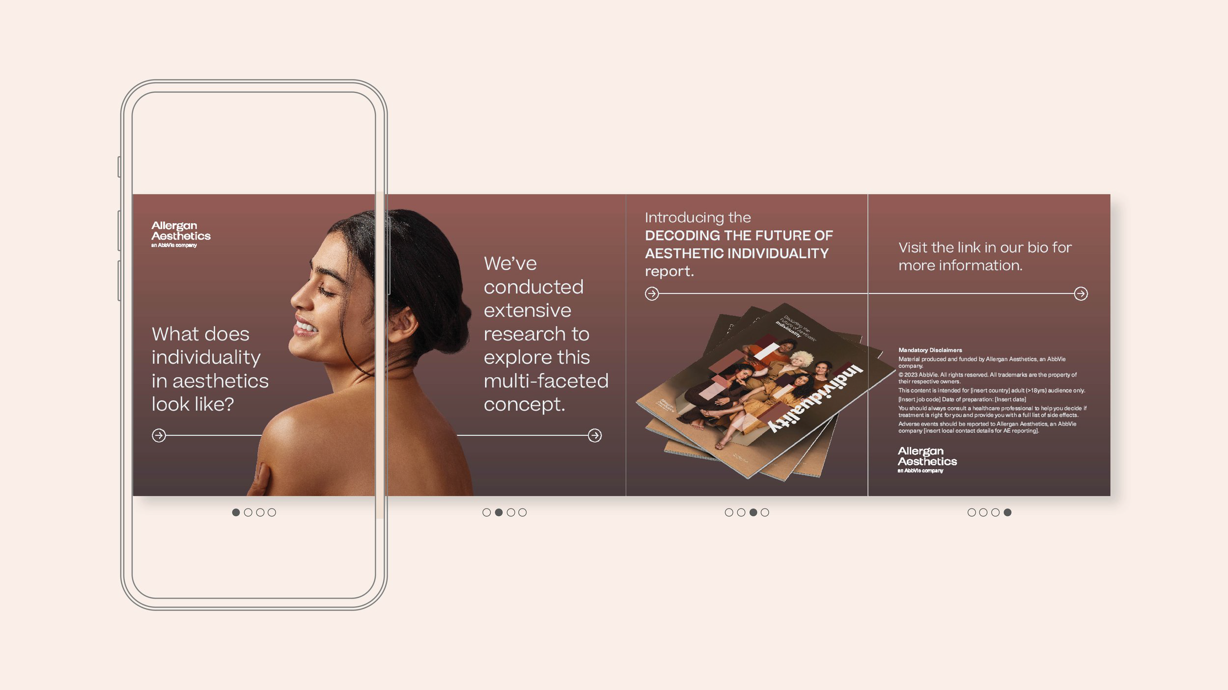 I was responsible for the design and delivery of a suite of social assets for the Individuality campaign, working within Allergan Aesthetics’ established visual system. My responsibilities included: