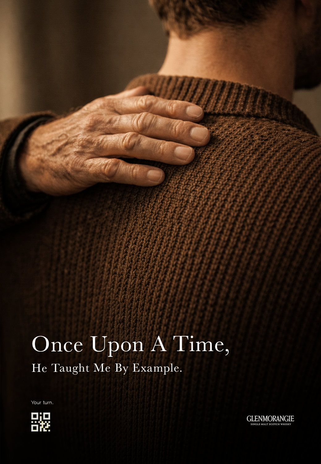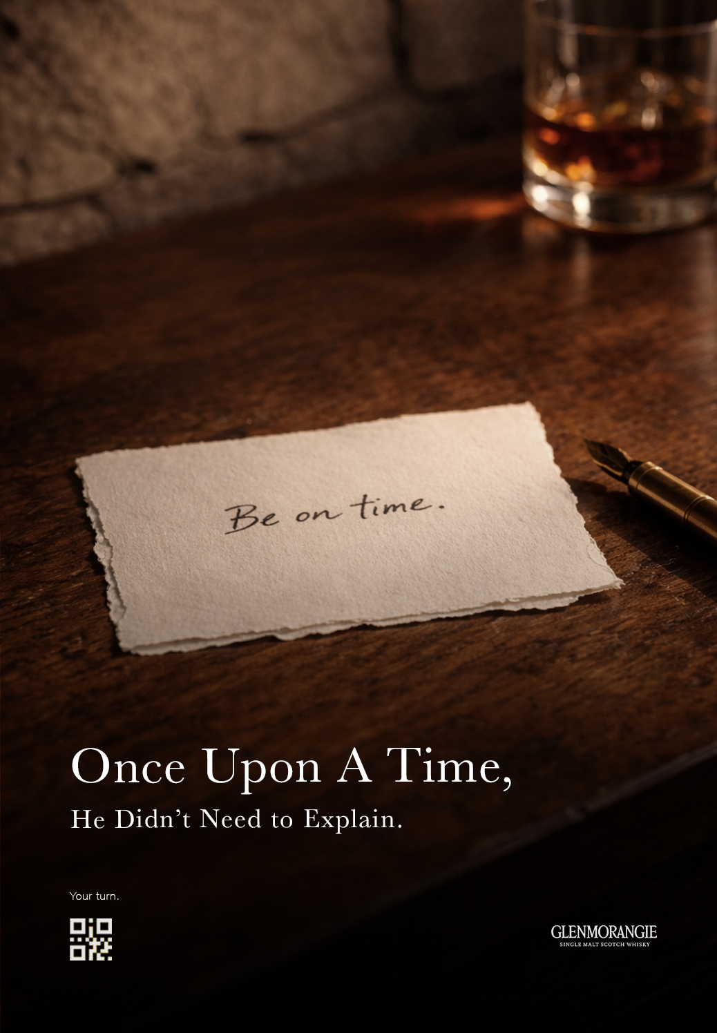 Dark oak, brass, textured paper and warm amber light created a world that felt quiet, grounded and emotionally intelligent - balancing premium craft with modern campaign clarity.